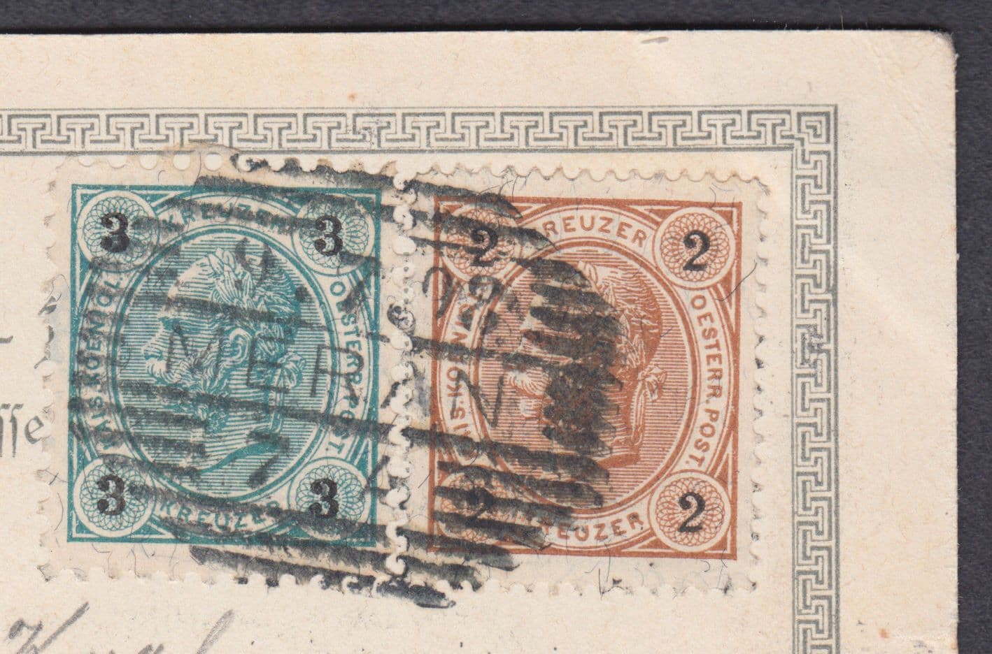 1898 Austria Postcard, 2k+3k; Meran to Bradford, Yorks(Squared Circle Receiver)
