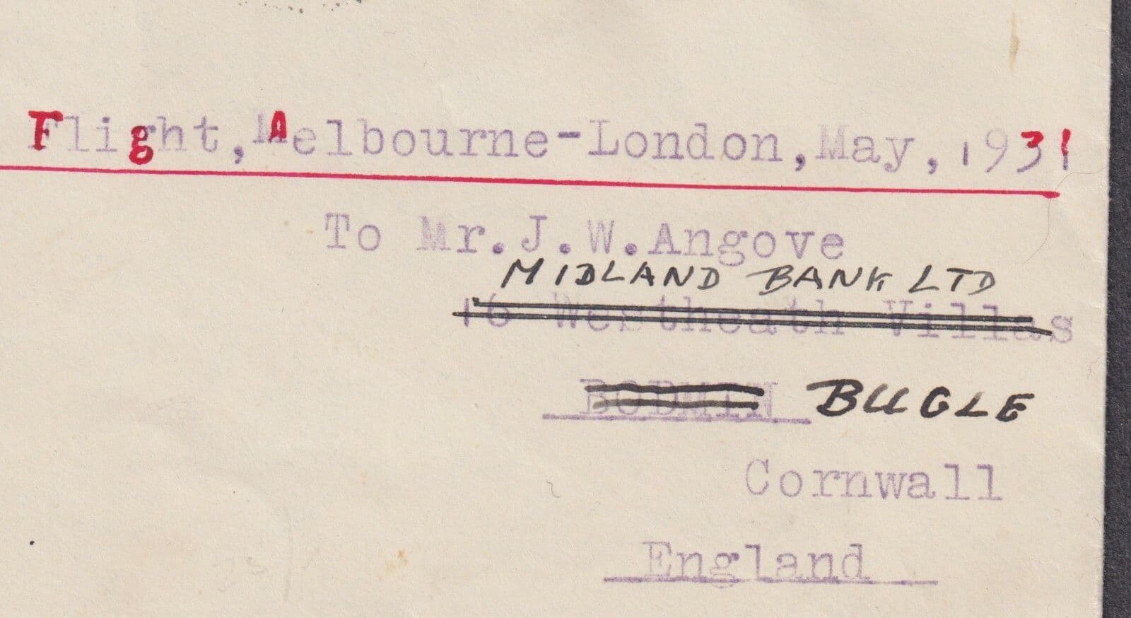 1931 Australia 2nd Experimental Flight Melbourne: London;Kew/Vic: Bugle,Cornwall