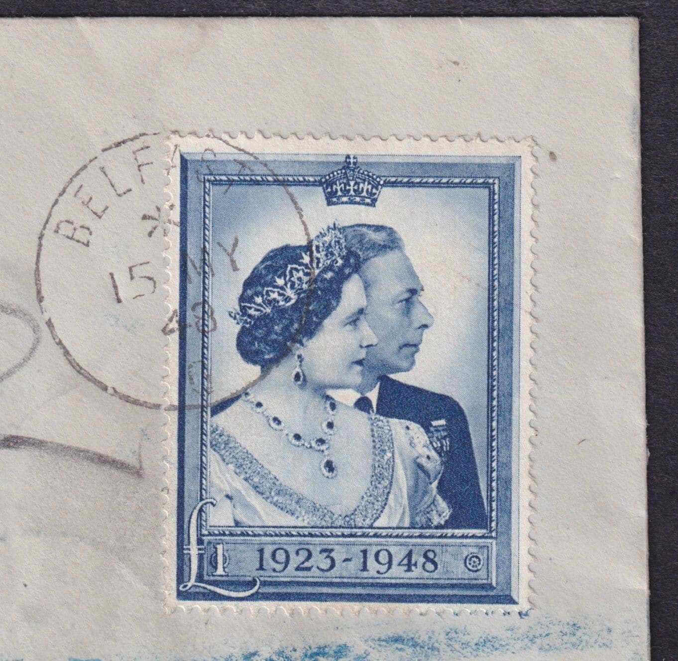 1948 Royal Silver Wedding £1 Registered, Belfast CDS to London (NOT a FDC)