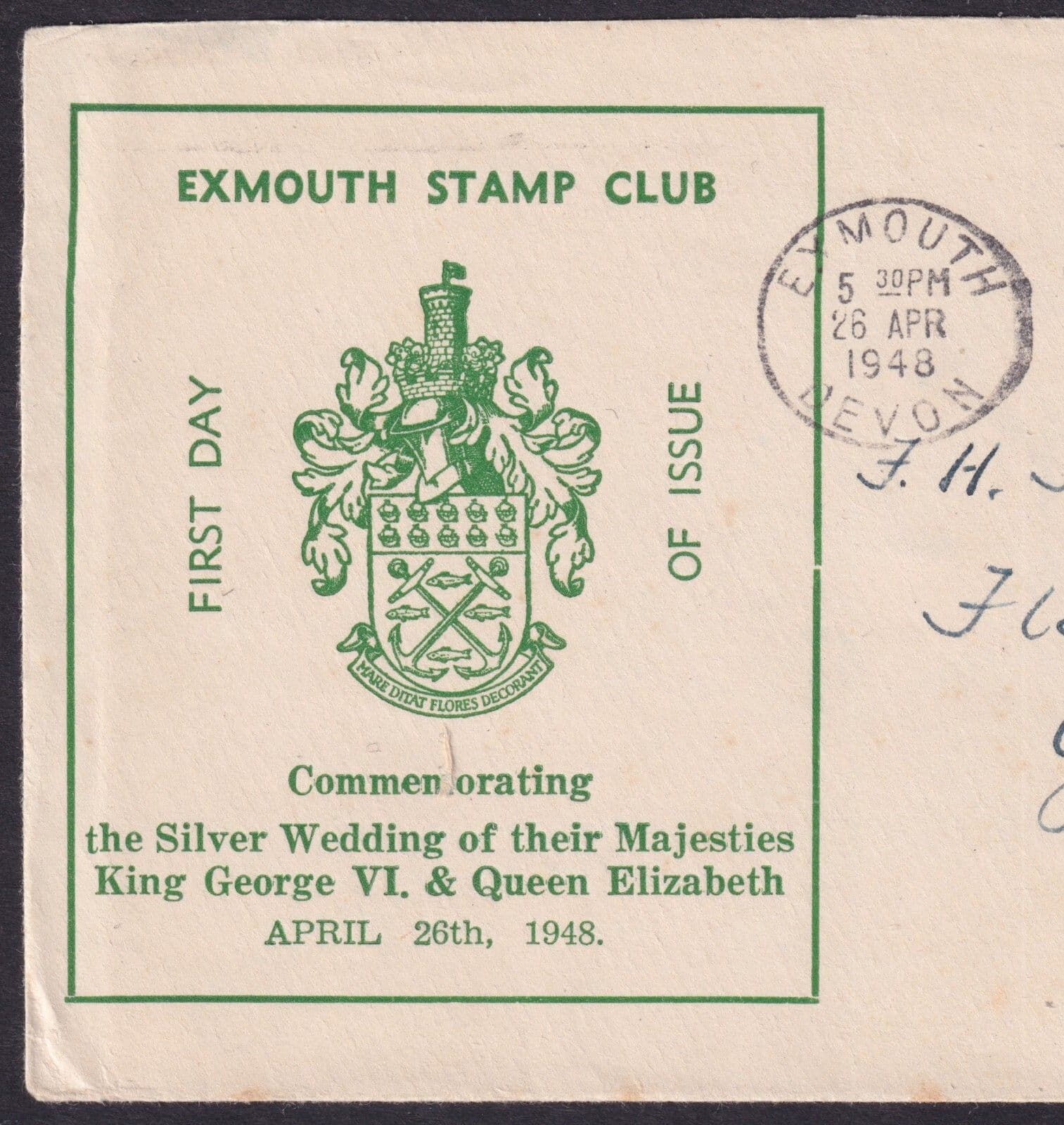 1948 Royal Silver Wedding 2 1/2d v.scarce Exmouth Stamp Club FDC; Exmouth Devon