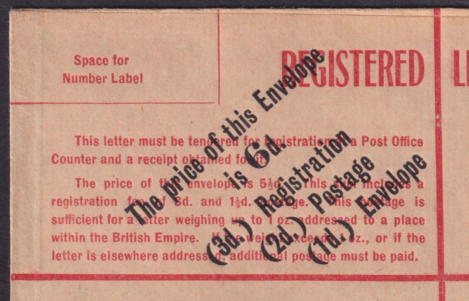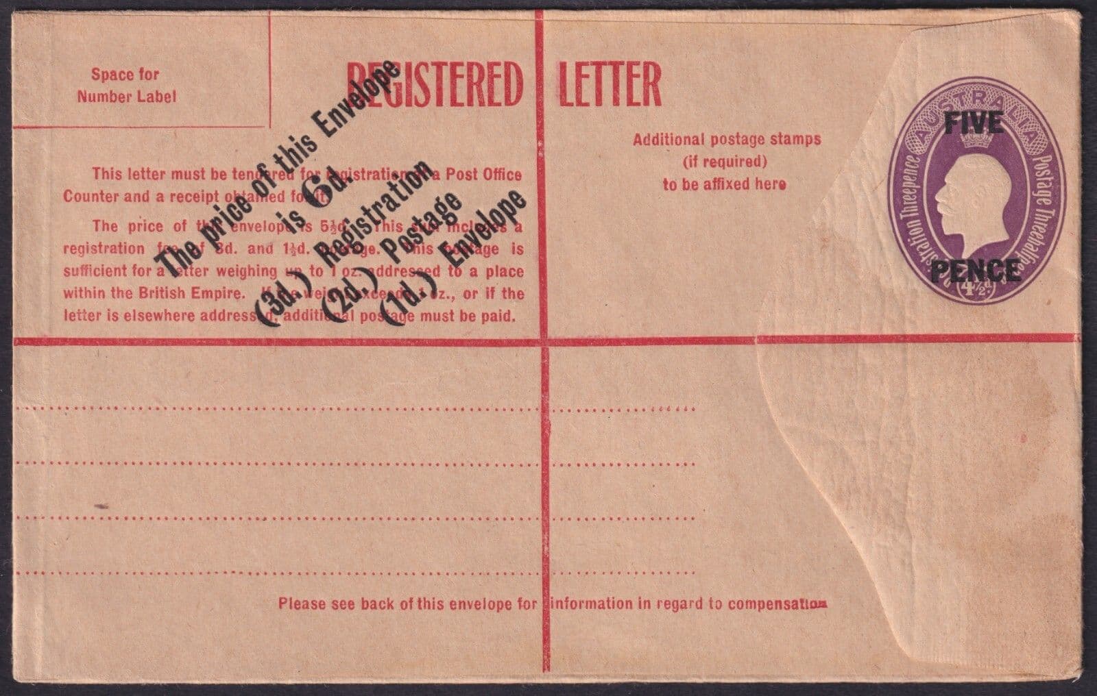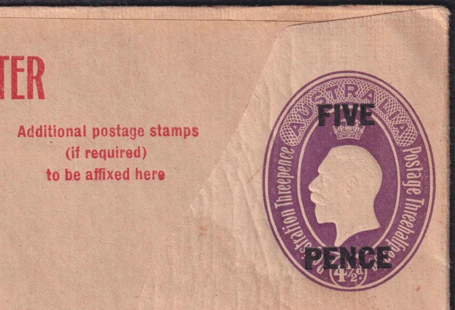 Australia 5d overprint on 4 1/2d KGV Head Mint Registered Envelope; scans