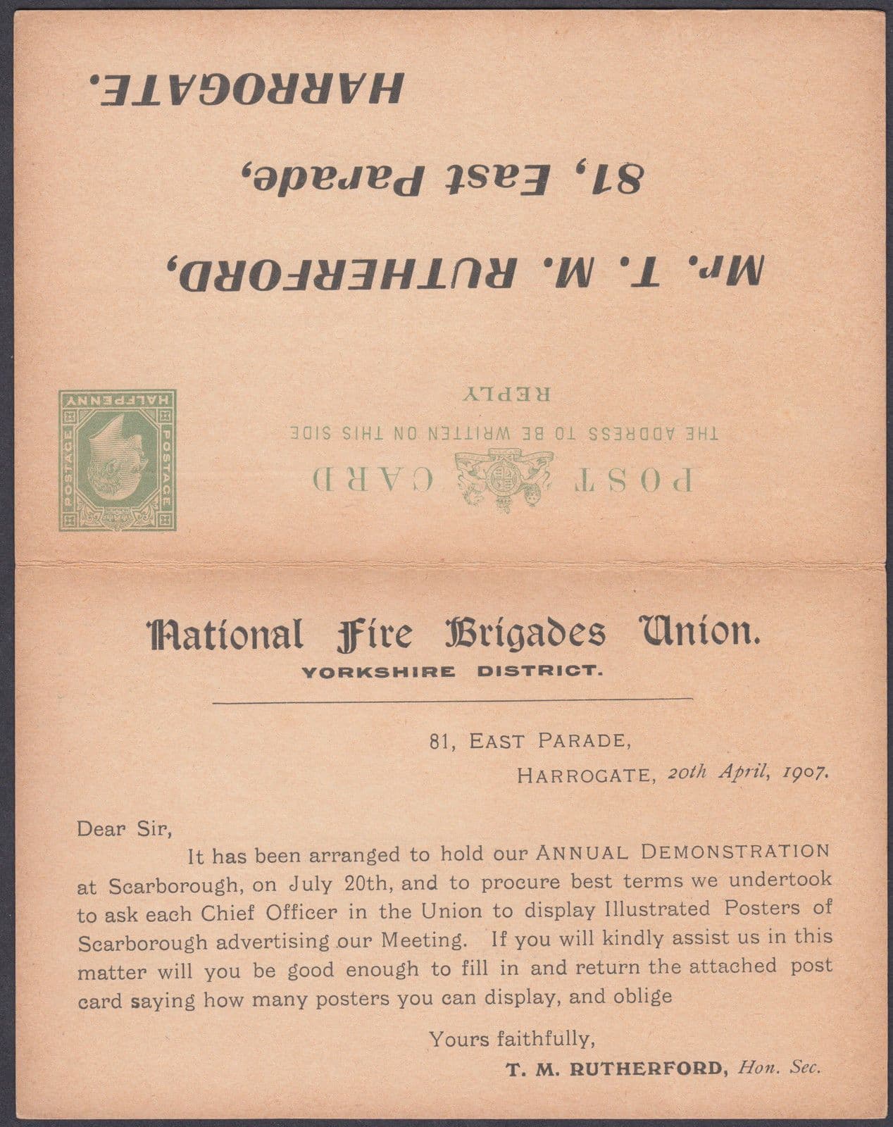 KEVIII National Fire Brigades Union; Harrogate; Scarborough Demo; PC+Reply Card